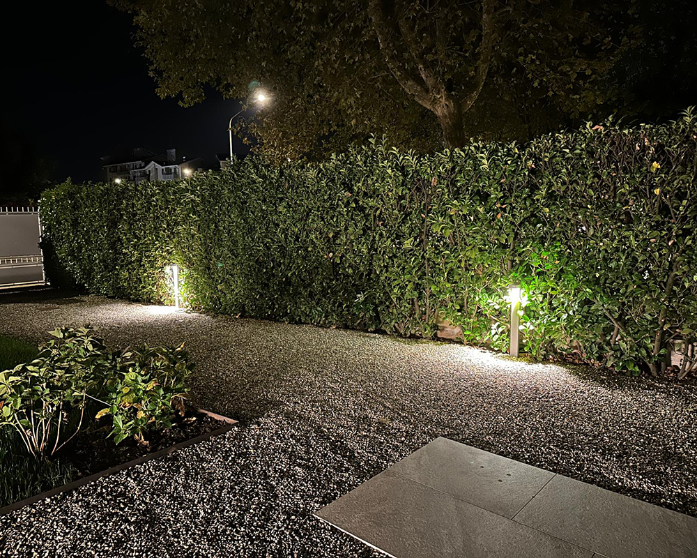 In questo progetto ci siamo concentrati sulla valorizzazione di un giardino privato attraverso un’illuminazione architettonica su misura, capace di unire estetica, sicurezza e funzionalità. Ogni sorgente luminosa è stata studiata per esaltare piante, camminamenti, elementi decorativi e aree funzionali, trasformando lo spazio esterno in un ambiente suggestivo e vivibile anche nelle ore serali.