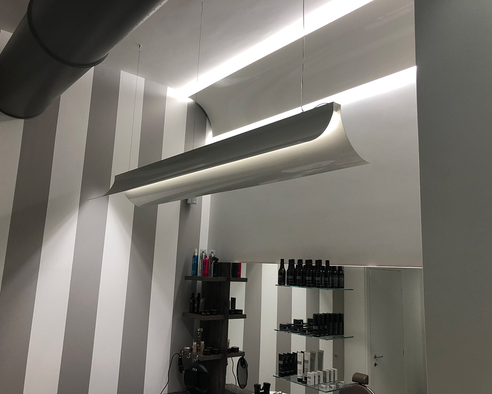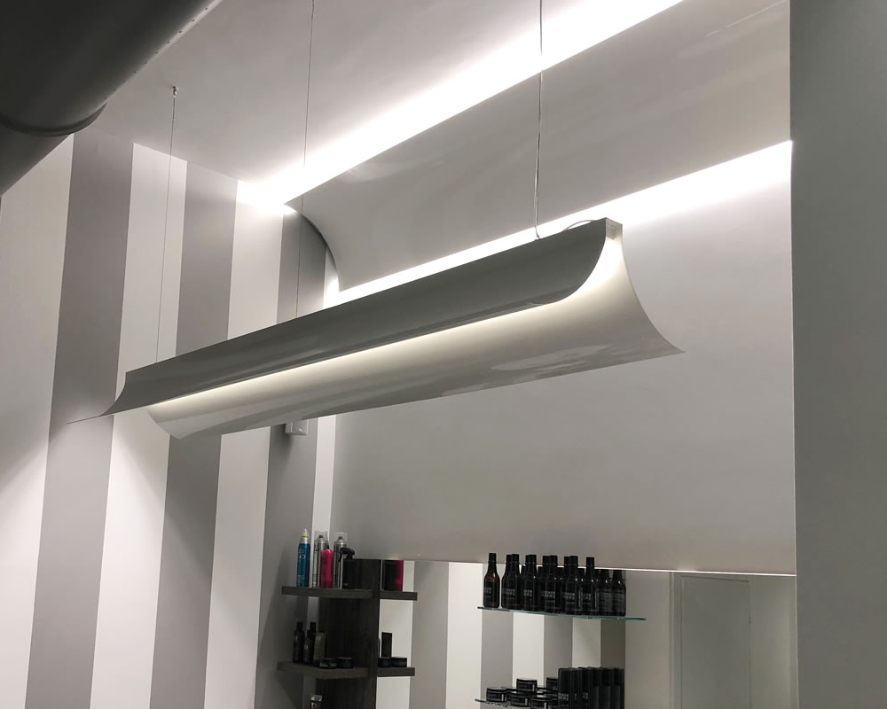 Nel progettare l’impianto per questo salone di parrucchiere, l’obiettivo principale era coniugare funzionalità tecnica, comfort visivo e lighting design d’autore. La sfida era realizzare un’illuminazione a più livelli, capace di rispondere a diverse esigenze operative ed estetiche all’interno dello stesso ambiente.