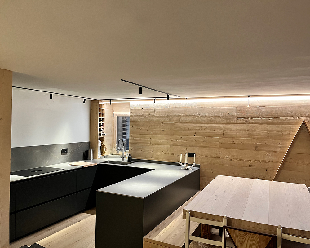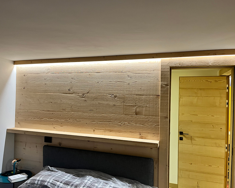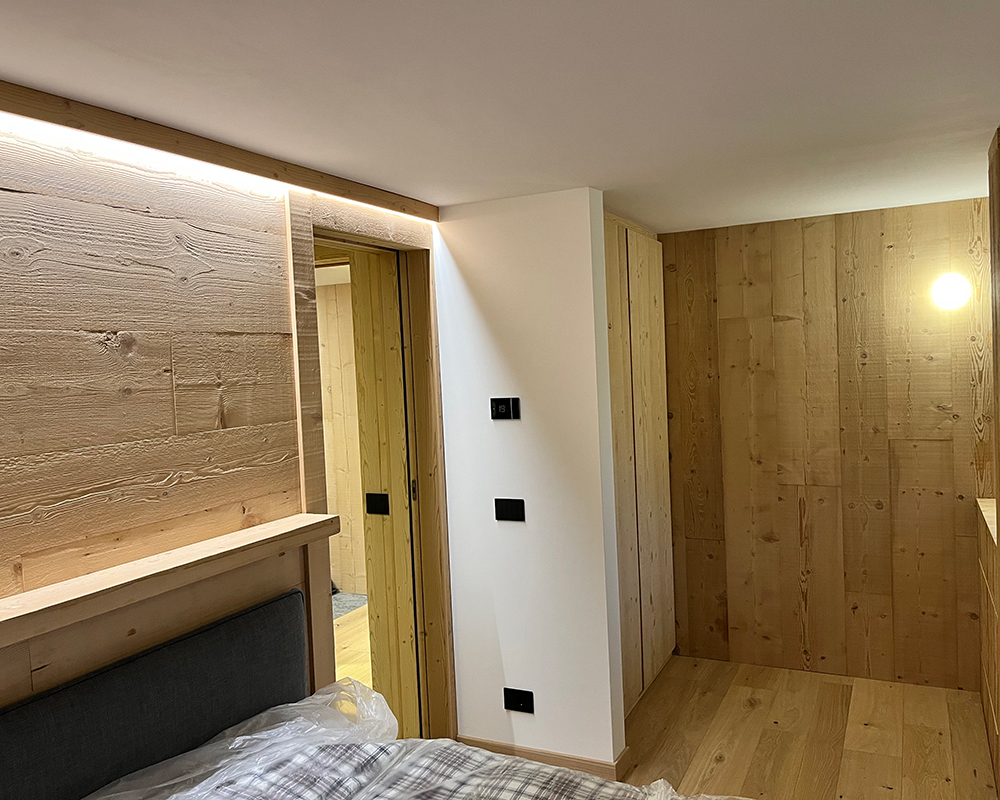 L’intervento ha coinvolto anche la gestione della climatizzazione e domotica, permettendo un controllo efficiente degli ambienti, in armonia con la sostenibilità energetica. L’obiettivo era chiaro: garantire il benessere abitativo in un contesto montano, senza compromettere l’anima autentica della struttura.