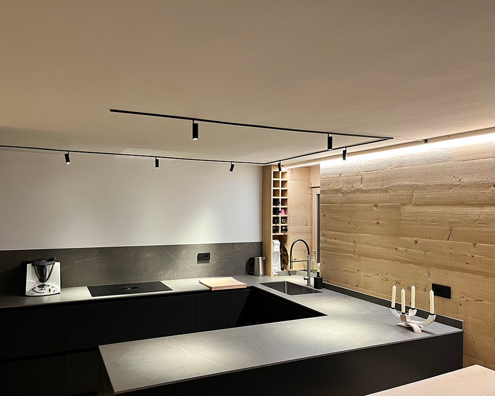 Le soluzioni adottate sono state studiate per fondersi con i materiali esistenti, privilegiando finiture naturali e tecnologie invisibili. Cablaggi, corpi illuminanti e dispositivi sono stati accuratamente posizionati per non interferire con l’estetica degli interni, caratterizzati da legno vivo, pietra locale e arredi artigianali.