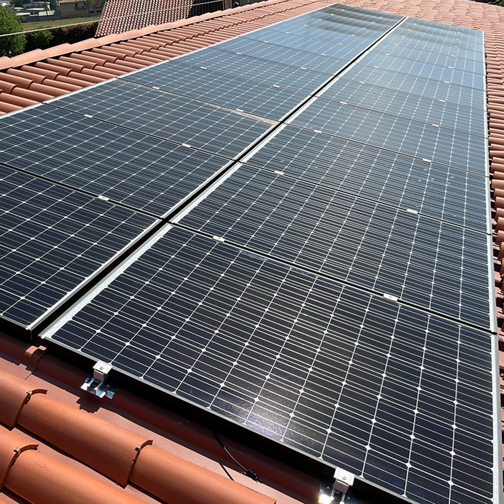 Abbiamo realizzato una soluzione su misura per ottimizzare l’efficienza energetica grazie all’installazione di un impianto fotovoltaico su tetto inclinato. Questo sistema fotovoltaico è stato integrato con attenzione e discrezione nell’architettura esistente, rispettando l’estetica dell’edificio e garantendo allo stesso tempo un elevato rendimento energetico. Grazie all’utilizzo di pannelli solari di ultima generazione e componenti di alta qualità, il nostro impianto fotovoltaico assicura una riduzione significativa dei consumi energetici e un concreto risparmio energetico nel tempo.