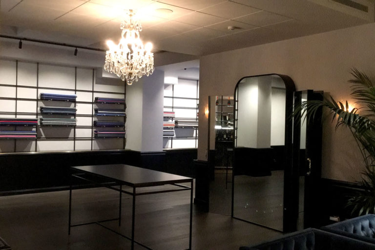 Il focus principale dell’intervento è stato l’impianto di illuminazione tecnica, progettato per garantire resa cromatica neutra e totale assenza di distorsione sulle tonalità dei tessuti in esposizione. Abbiamo selezionato corpi illuminanti a basso impatto visivo, perfettamente integrati nell’architettura dello spazio, per mantenere l’attenzione sui materiali e valorizzarne le caratteristiche.